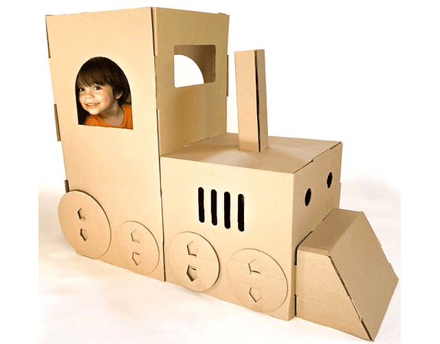 Nuestra Locomotora de Vapor ideal para jugar al interior de la casa o al aire libre. Está elaborado con cartón corrugado café de 3mm de espesor, resistente y perfecto para ser pintado con lápices o témperas.