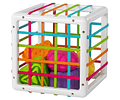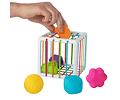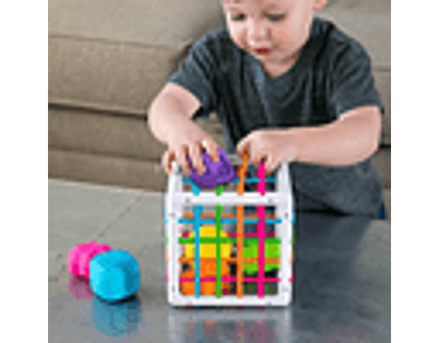 ¡Una experiencia increíblemente única de exploración de formas! Caja innovadora de clasificación de formas, las 6 figuras están diseñadas con texturas y diferentes formas para ser introducidas a través de las bandas elásticas.. Hay un cubo, un diamante, una esfera, un triángulo, una flor y el feliz logotipo de Fat Brain . Fomenta las habilidades motoras finas, la exploración táctil, la experimentación y el aprendizaje causa-efecto.
