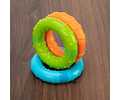 ¡Fascinación sensorial! Conjunto de tres anillos magnéticos texturizados para el juego sensorial. Cada anillo está cubierto de un material suave y gomoso, presenta texturas únicas para que los dedos exploren y tiene un sonajero incorporado que deleita las orejas. Además ... ¡Todos se conectan entre sí, en cualquier orden y desde cualquier lado, magnéticamente! Apila, rueda, sacude, explora, descubre ... Fomenta la exploración sensorial, el descubrimiento táctil y las habilidades motoras finas. Los anillos miden cada uno 6cm de diámetro y 1cm de espesor. Diseño y materiales de alta calidad sin BPA. Excepcionalmente seguro para el bebé.